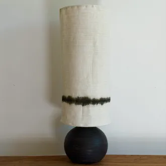 Le très haut ! : abat-jour en chanvre ancien fin blanc craie, peint à la main en tie and dye brun très foncé.