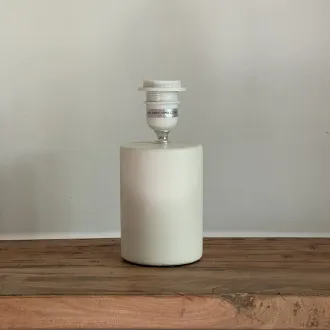 Pied de lampe en terre cuite aspect granuleux, couleur beige. Dimensions : diamètre 17 cm, hauteur 20 cm (hors douille). Bague E27. Idéal avec un abat-jour diamètre 20 cm hauteur 35 cm.